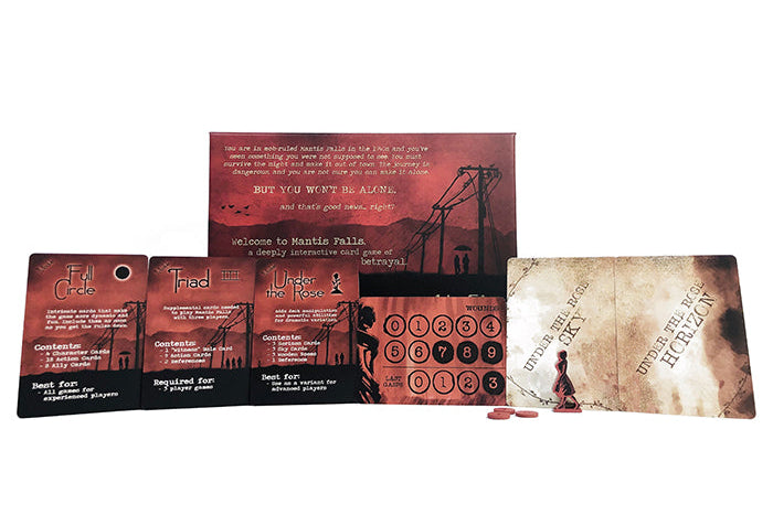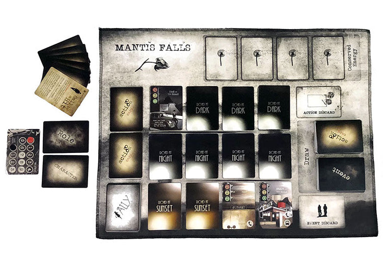 Mantis Falls combines hand-building, risk management and social deduction in a detailed blend of strategy and player interaction. Players make concealed moves and develop hidden plans, but will also need to have thorough conversations throughout as they discuss tactics, defend their choices and bluff to protect carefully guarded secrets.